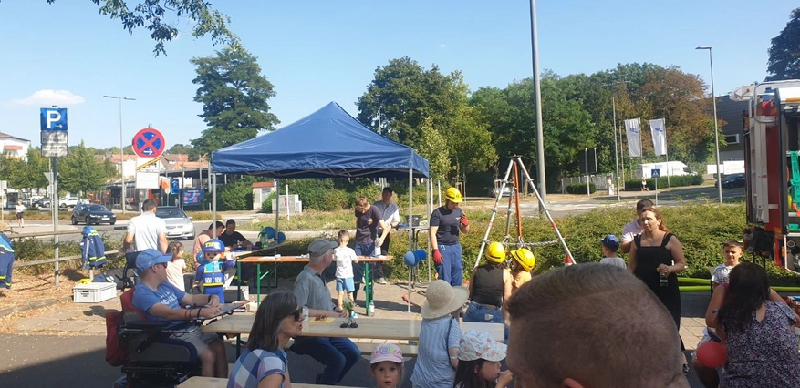 Auf der Bühne sorgte ein buntes Programm für Unterhaltung: Von der Band „Get Rhythm“ über das Vorsingen der Kita St. Joseph und einer Performance der Seniorentanzgruppe bis hin zu einer Bauchtanzvorführung war für jeden Geschmack etwas dabei. Durch das Programm führte Klaus Niesel, Vorstandsmitglied des Stadtteilbeirats NORA.Vielfältige Aktivitäten wurden von den zahlreichen Vereinen und Institutionen des Stadtteils organisiert, die die rund 400 Besucher begeisterten. Für die Kinder gab es unter anderem eine Hüpfburg, Spiele und Kinderschminken, angeboten vom Jugendtreff Nord und dem AStA. Auch ein Bastelstand und Riesenseifenblasen sorgten im Hof der Kita St. Joseph für Begeisterung. An der Magdeburger Straße präsentierten die Polizei, die Freiwillige Feuerwehr und das THW ihre Ausrüstung und gaben Einblicke in ihren Arbeitsalltag. Ein Eiswagen bot den Besuchern außerdem eine süße Erfrischung an diesem letzten heißen Sommertag. Zudem stellten sich der Stadtteiltreff, das Nordend-Büro sowie politische Stände der CDU und SPD vor und gaben den Anwohnern die Möglichkeit zum Austausch.