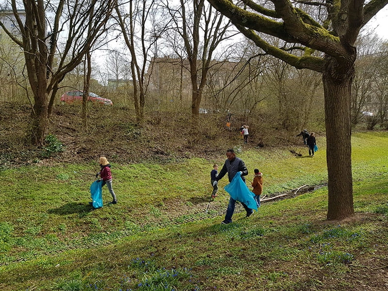 Ausgestattet mit Handschuhen, Müllzangen, Eimern, Müllbeuteln und einem alten Bollerwagen wurde der Müll unter Einhaltung der aktuellen Hygiene- und Abstandsregeln aufgesammelt und zu einer Abholstelle transportiert. „Corona-bedingt konnten wir zu Ostern nicht in den Urlaub fahren, da machen wir doch gerne bei dieser Saubermachaktion mit“, so die Rückmeldung einer Mutter, die mit ihrer 7-jährigen Tochter sich beteiligt hatte.