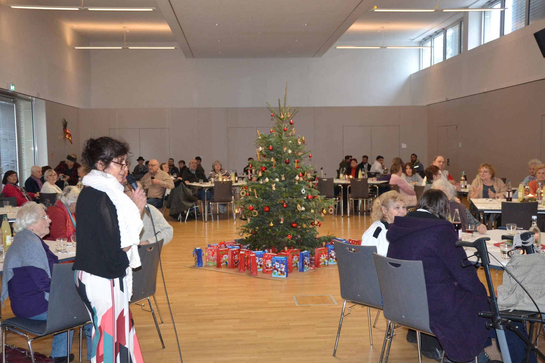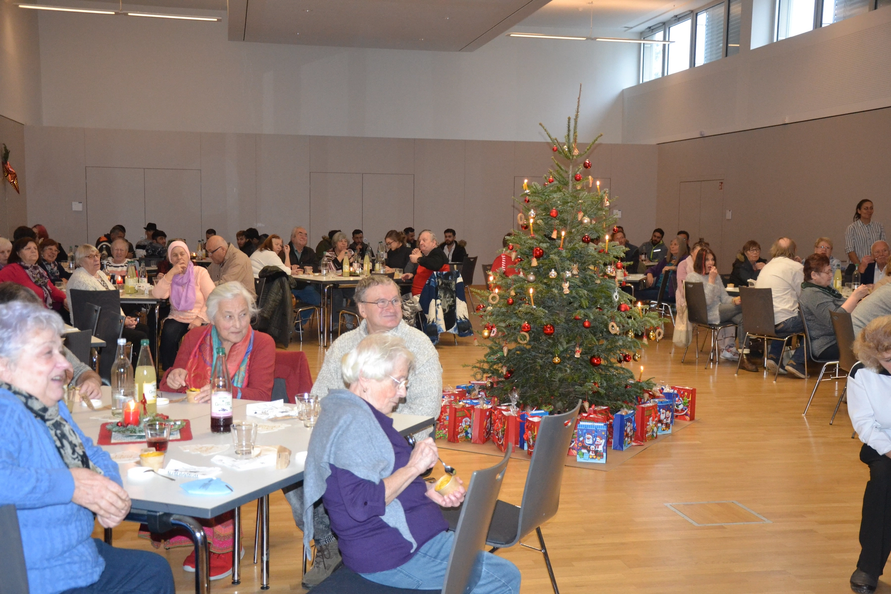 Natürlich durfte ein weihnachtliches Rahmenprogramm nicht fehlen: gemeinsam wurden Weihnachtslieder gesungen hörte gespannt die Lesung einer Weihnachtsgeschichte. "Man sieht den Menschen die Freude richtig an“, so Andreas Goerke vom Verein Fulda stellt sich quer. Mit Kaffee und Kuchen wurde am Nachmittag die Bescherung eingeläutet. In liebevoller Arbeit haben viele ehrenamtliche Helferinnen und Helfer Weihnachtstüten und Weihnachtspäckchen gepackt, die gefüllt mit Geschenken und so mancher Leckerei waren.
